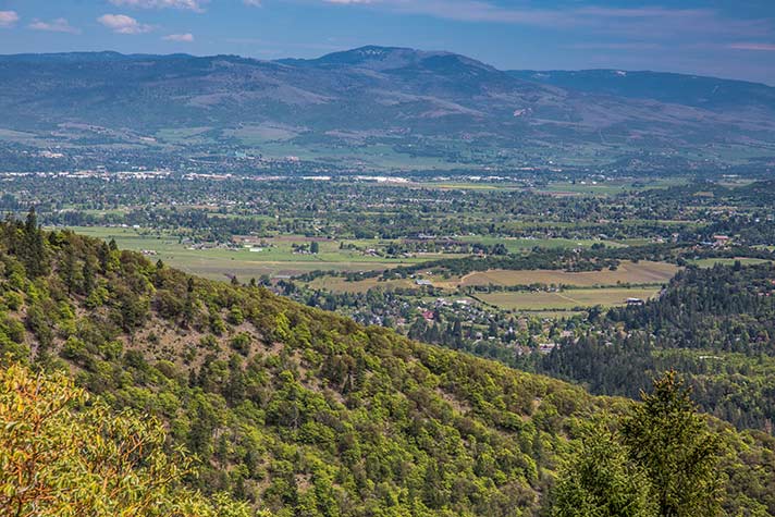 Where can hikers get the best view of Bear Creek Valley?—Both the Cascade Crest Shelter and Upper Twin Peak viewpoints provide extensive views of the valley. However, the newest viewpoint on the Bear Ridge Trail offers the overall, best view. An additional view from the trail of Grayback Mountain (think Oregon Caves) and Red Buttes is also visible.